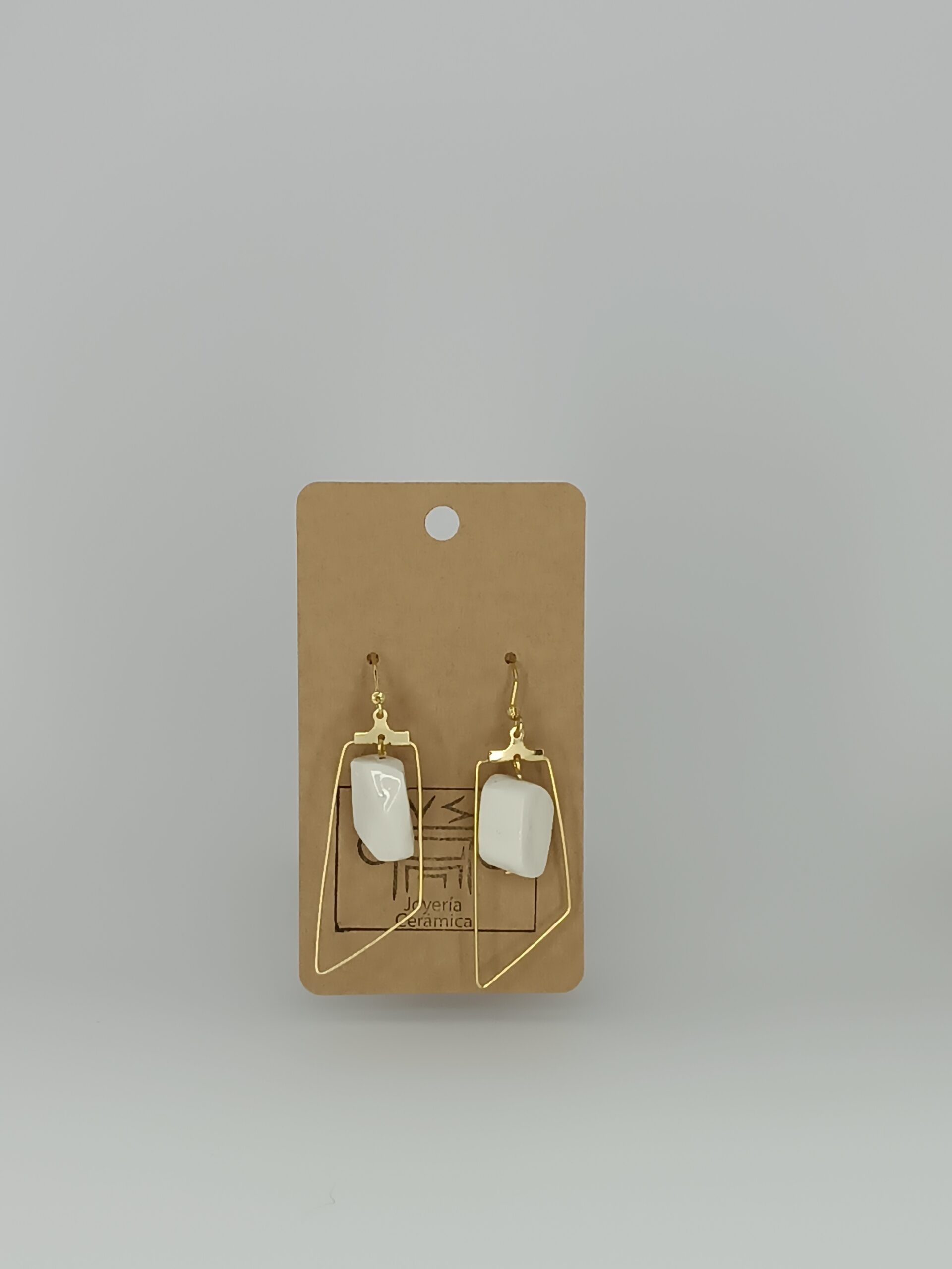 Pendientes de cerámica esmaltada con gancho dorado de acero hipoalergénico y aro Prisma de fantasía. Ligeros sencillos y elegantes. Ideales para cualquier ocasión.
