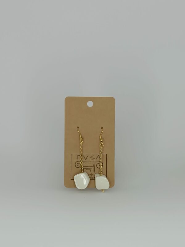Pendientes de cerámica esmaltada con cierre de acero hipoalergénico y cadena dorados.. Ligeros sencillos y elegantes. Ideales para cualquier ocasión.